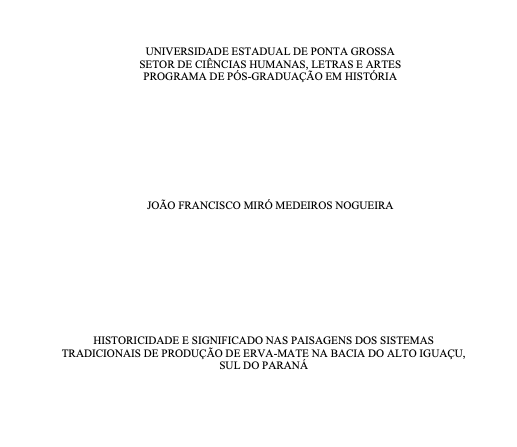 Foi publicada hoje (02/06/21) a pesquisa desenvolvida em uma grande parceria que envolveu o CEDErva, a Universidade Estadual de Ponta Grossa e agricultores erveiros dos municípios de São Mateus do Sul, São João do Triunfo e Antônio Olinto. A pesquisa é resultado de estudos realizados dentro do Programa de Pós-Graduação em História da Universidade de Ponta Grossa e foi conduzida por João Francisco Miró Medeiros Nogueira, sob orientação da Profª Drª Alessandra Izabel de Carvalho e co-orientado pela Profª Drª Evelyn Nimmo.